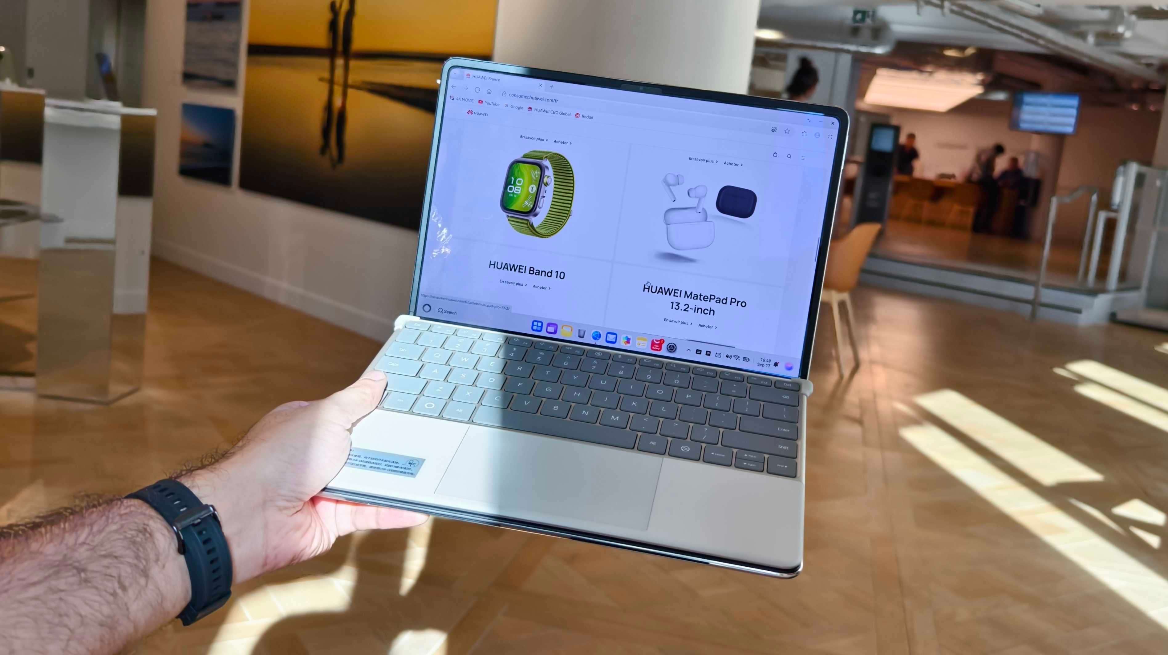 Étant donné qu'il s'agit d'un écran tactile, Huawei a dû concevoir une charnière spéciale permettant à l'appareil de rester stable à n'importe quel angle réglé entre 30° et 150°, même lors des interactions tactiles sur l'écran. 🔩📐